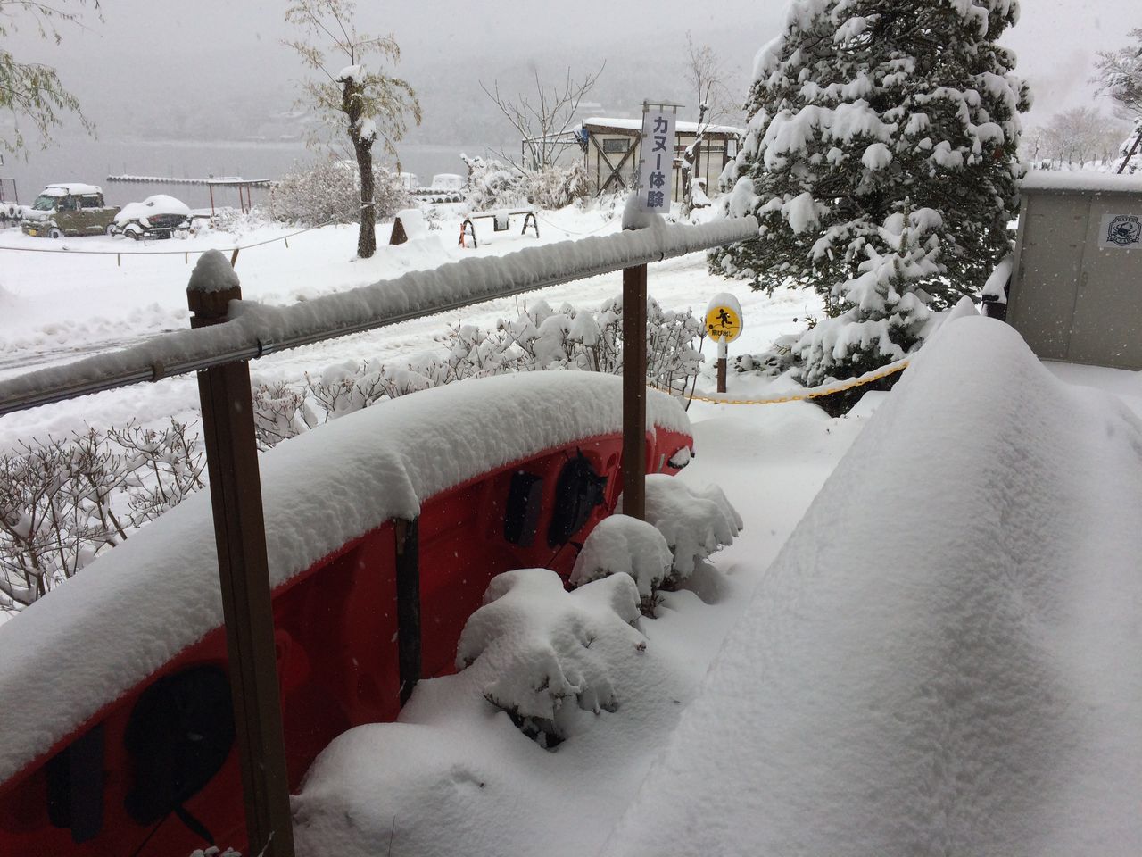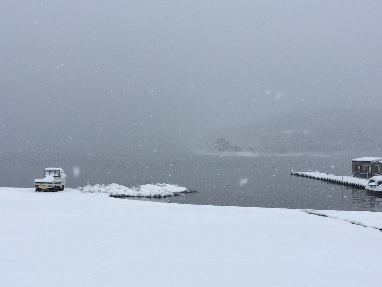 今朝は今シーズン初の小雪が舞った山中湖 …